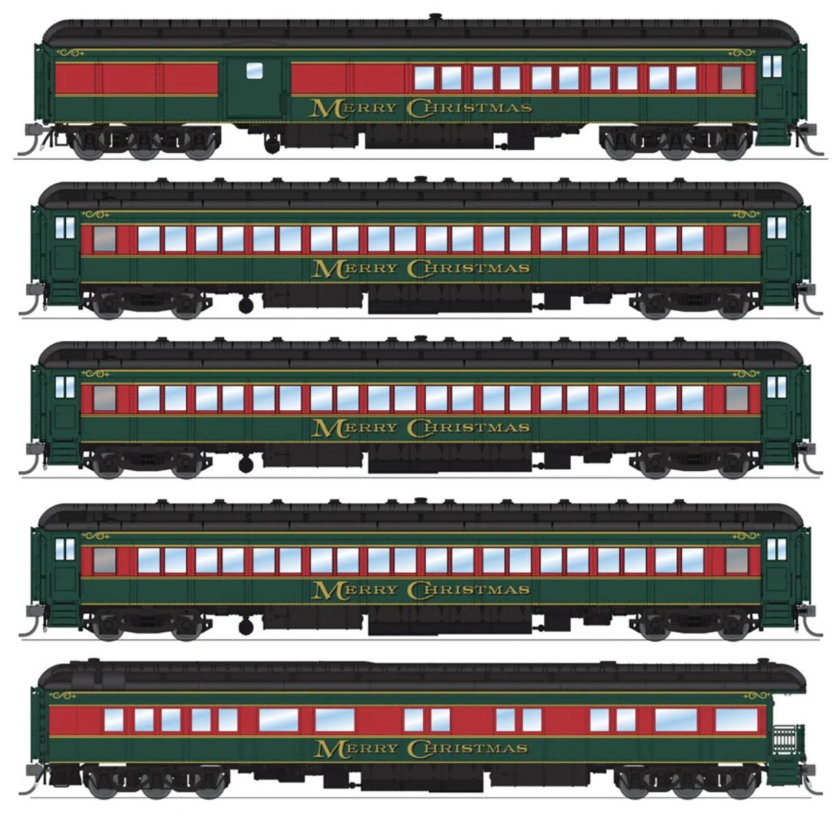 9103 Heavyweight 5-Car Passenger Set, Christmas Paint Scheme, HO Scale